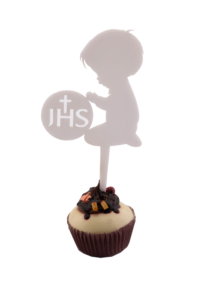 Topper komunijny Dziewczynka, Chlopiec IHS Biały