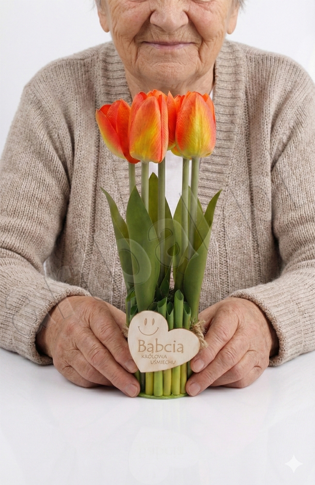 Stojący bukiecik tulipanowy z sercem