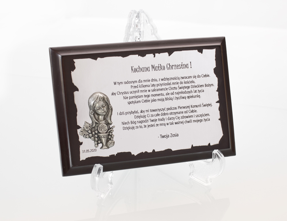 Pamiątka Okolicznościowa Komunia Chrzest Podziękowanie GRAWER