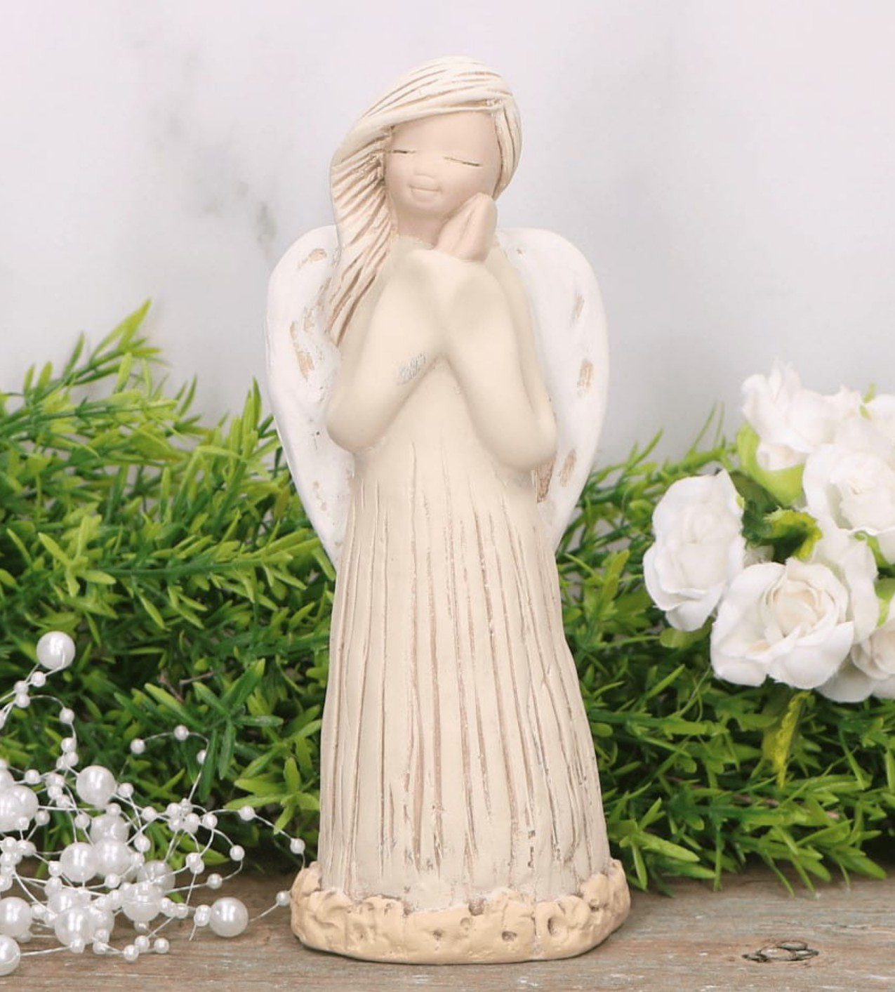 Anioł gipsowy - złożone ręce 17 cm - kremowy