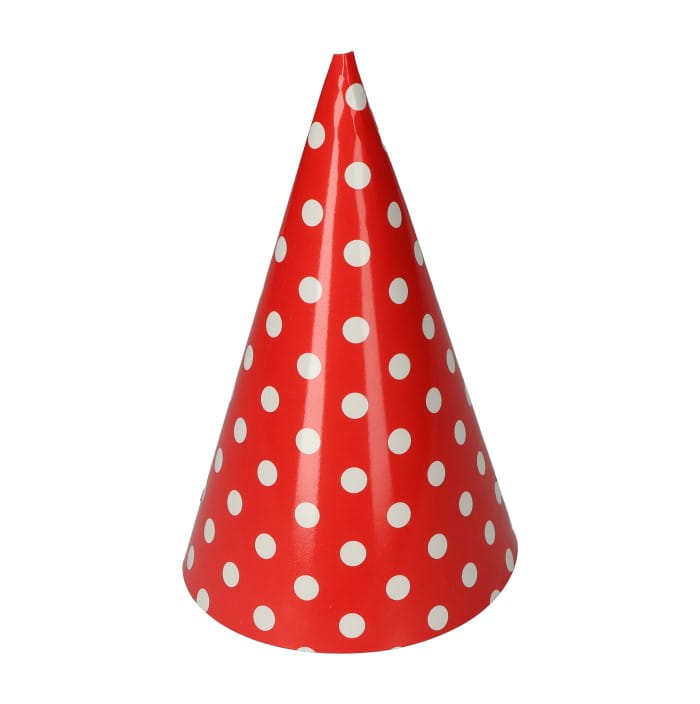 Czapeczka imprezowa czerwona w białe groszki komplet 6 szt.
