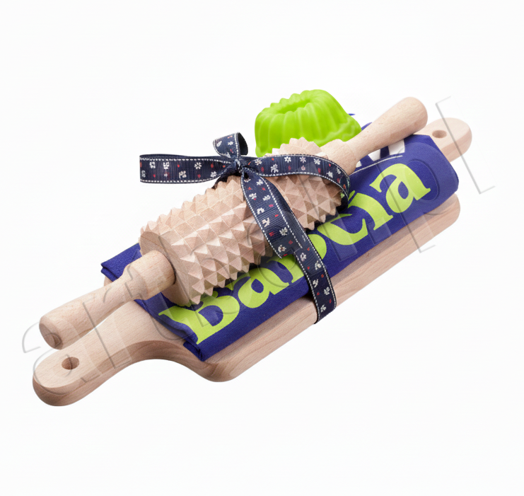 - deskę drewnianą z rączką o wymiarach ok 30 x 14 cm